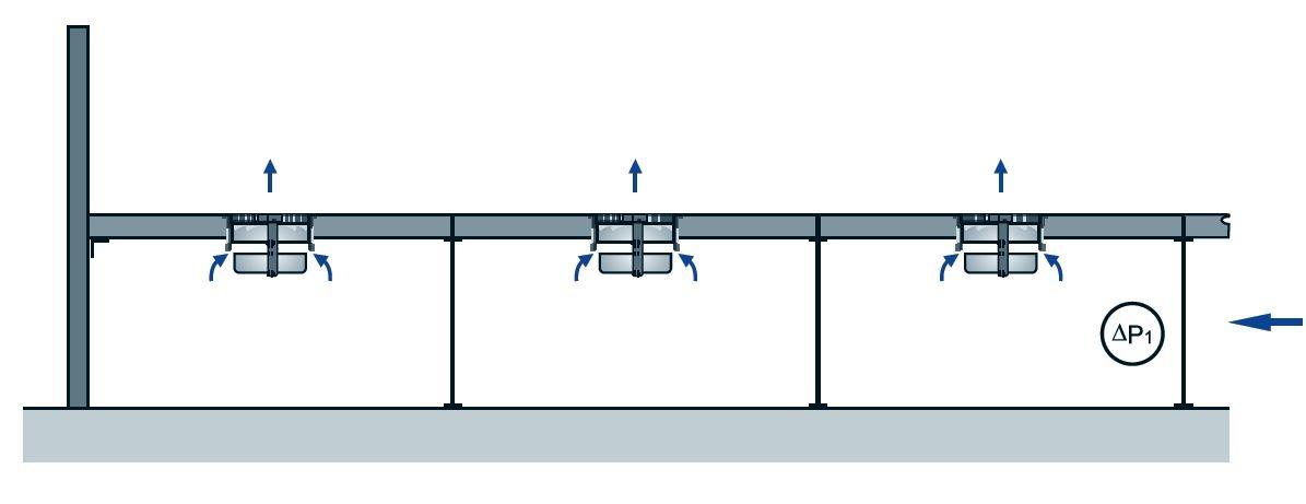 Positive plenums are preferred for large floor areas. Here, plenum boxes are not require due to the uniform under floor pressure distribution. It is not necessary to balance the air flow to individual diffusers.
