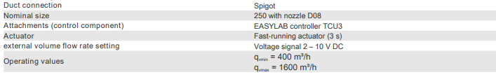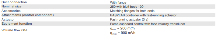 Variable volume flow control with an electronic EASYLAB controller for fume cupboardsSizing data